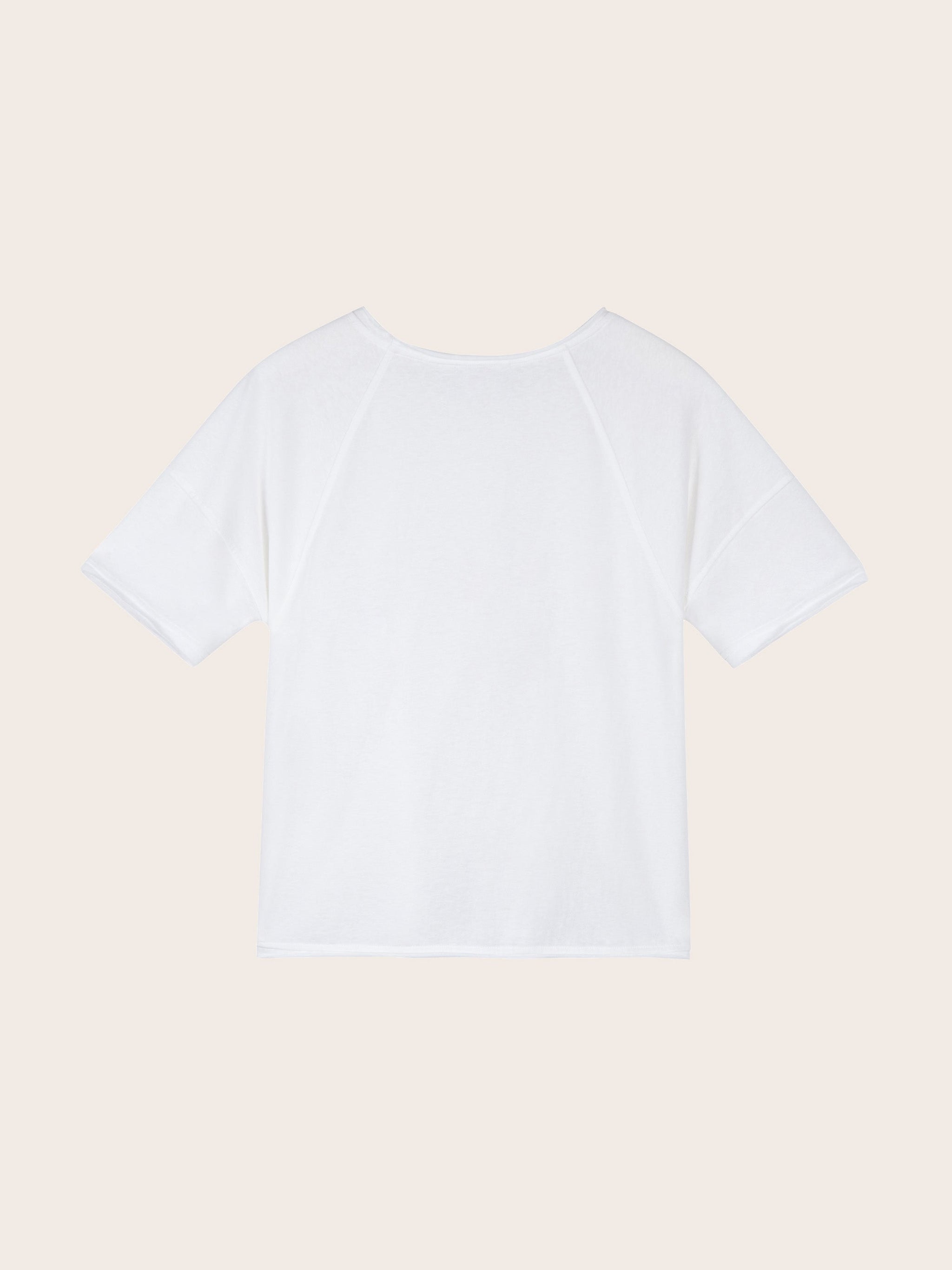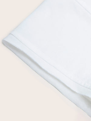 An elevated essential for everyday ease, the Elara Cotton Raglan Tee is rendered in clean white with a softly structured silhouette. Designed with a classic crew neckline and short raglan sleeves, it allows for ease through the shoulders while maintaining a streamlined shape. Subtle flat-felled seams and bias-bound hems enhance its minimal design.