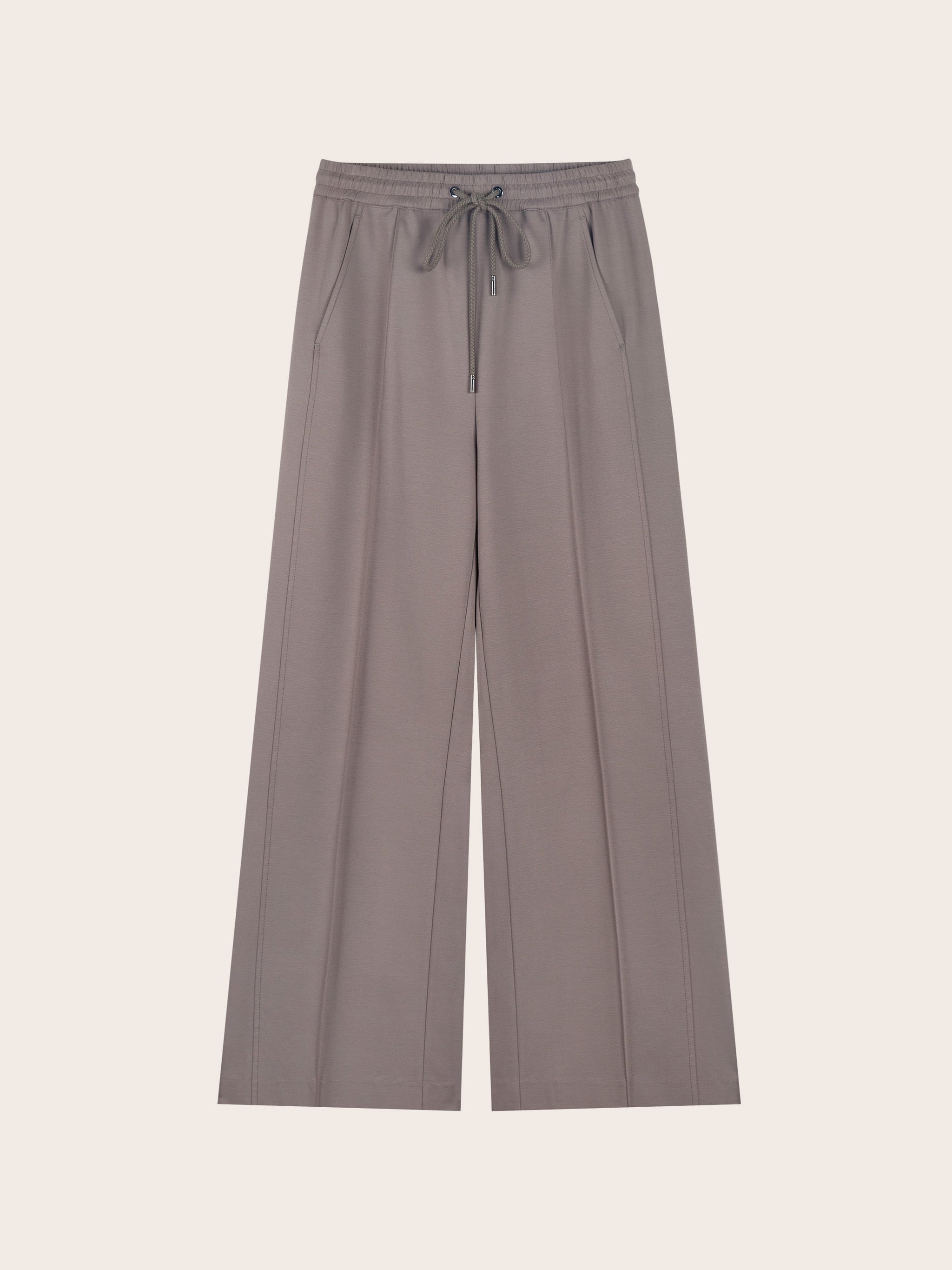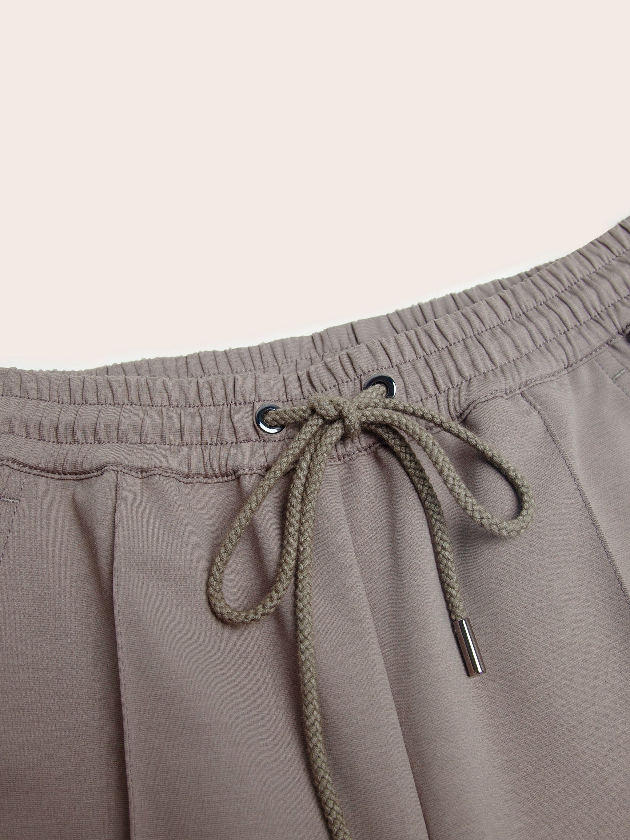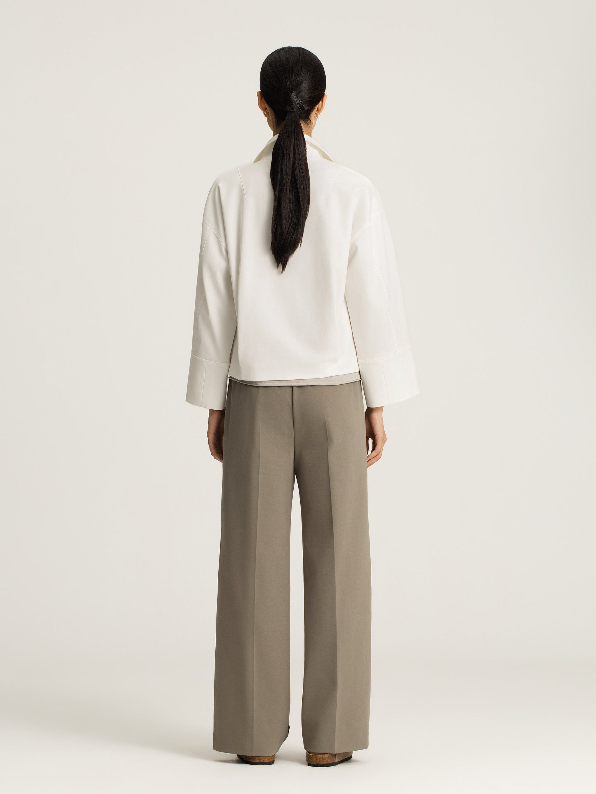 Designed for ease with elevated structure, the Elliot Soft Cotton Pant offers relaxed tailoring for everyday refinement. Crafted from a fluid, weighty fabric with a clean drape, it features a wide-leg silhouette with front pintucks. The elasticated waistband and tonal drawcord deliver comfort and adaptability, while discreet slash pockets and back welt detailing provide practical touches. Finished in a stone-toned hue, it moves seamlessly from casual office days to weekend errands.