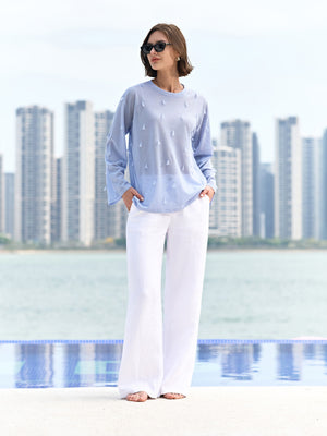 The Grace Blouse is a lightweight essential crafted from a soft, breathable knit that drapes effortlessly. Designed with wide, relaxed sleeves and a simple crew neckline, it brings understated elegance to everyday wear. Its fluid silhouette offers comfort and versatility, pairing seamlessly with denim, skirts, or tailoring for a clean, modern look.