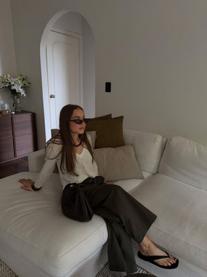 A foundational essential with timeless appeal, the Lena Wool Blend Top is designed for all-day comfort with a sleek, flattering fit. Crafted from a finely ribbed knit with gentle stretch, it features a deep V neckline with clean binding and full-length sleeves. Subtle shaping through the body allows it to tuck cleanly or sit comfortably as a standalone piece.