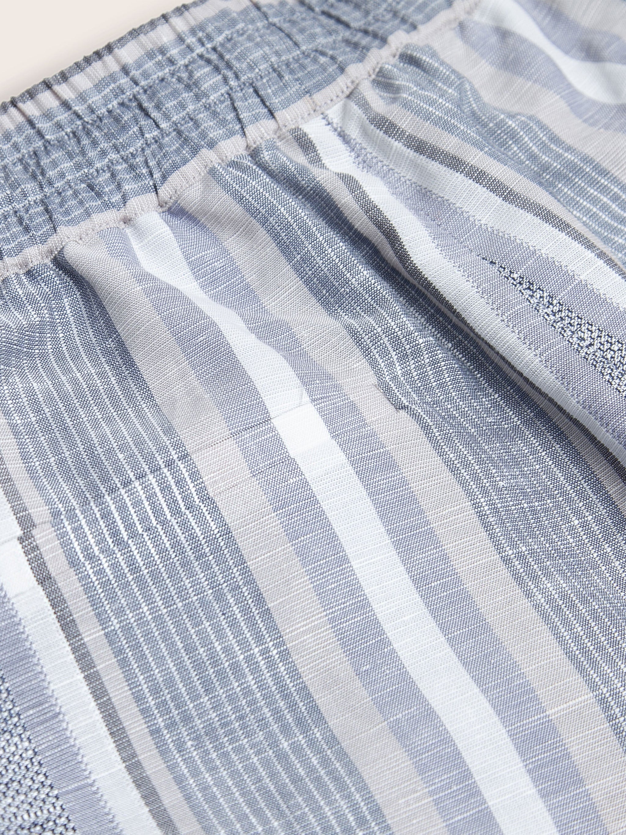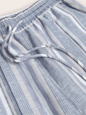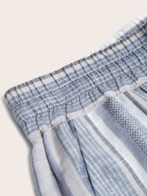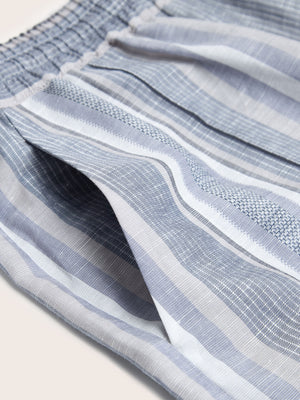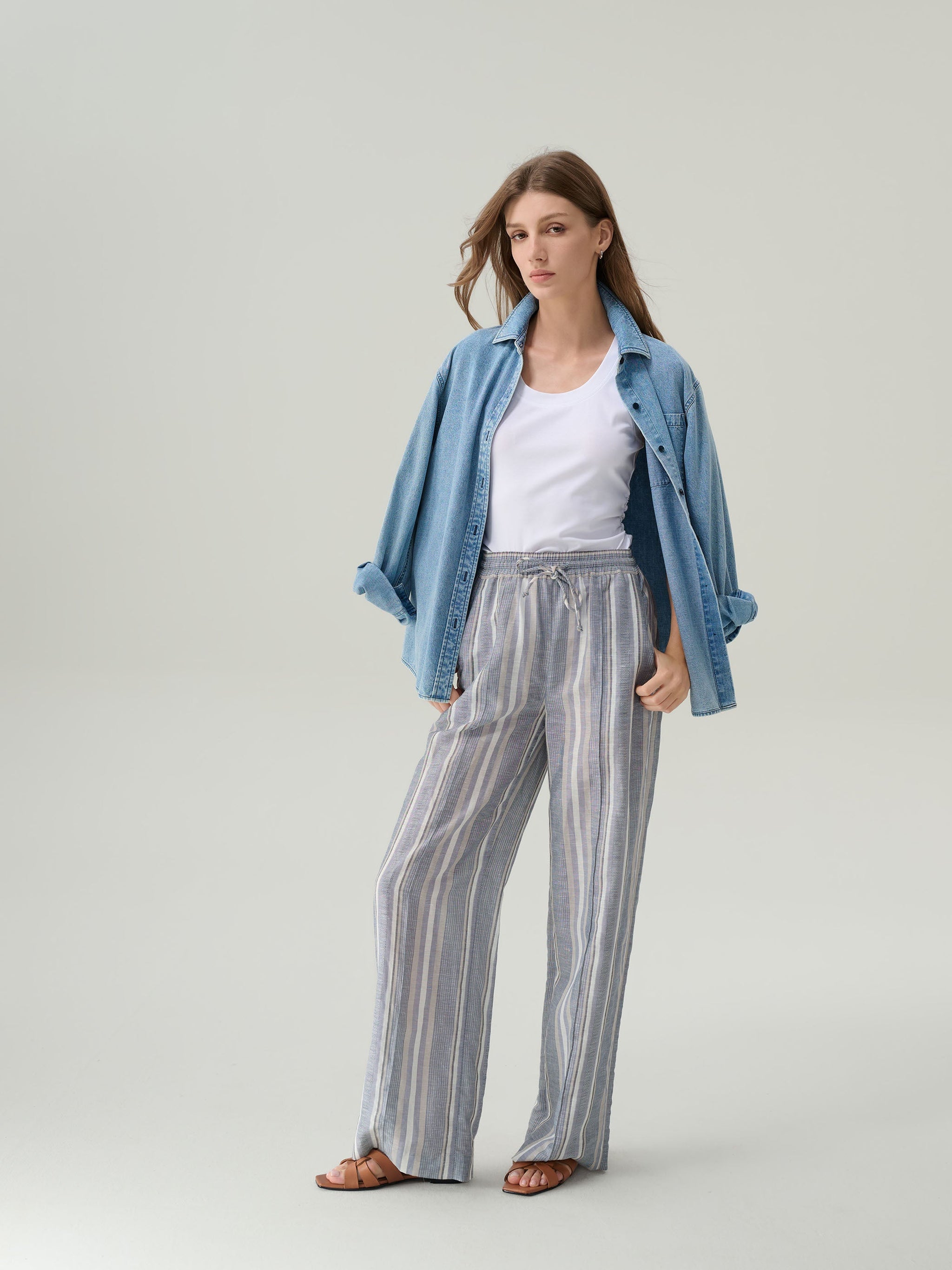 Relaxed yet refined, the Frida Striped Linen Pants are cut from a breezy linen blend. Featuring a wide-leg silhouette, they offer effortless movement and a flattering drape. A softly gathered elastic waistband with an adjustable drawcord ensures comfort, while side pockets add practical detail.