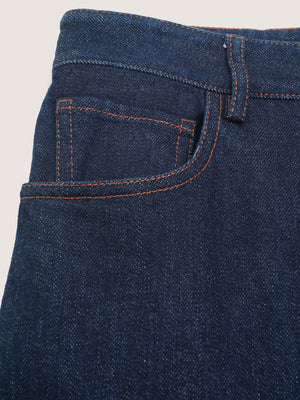 This indigo-dyed twill offers breathable comfort with added stretch for ease of movement. The medium-weight construction provides durability without bulk, making it versatile for everyday wear.