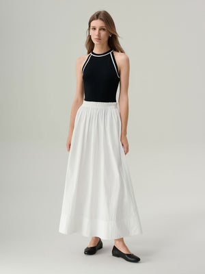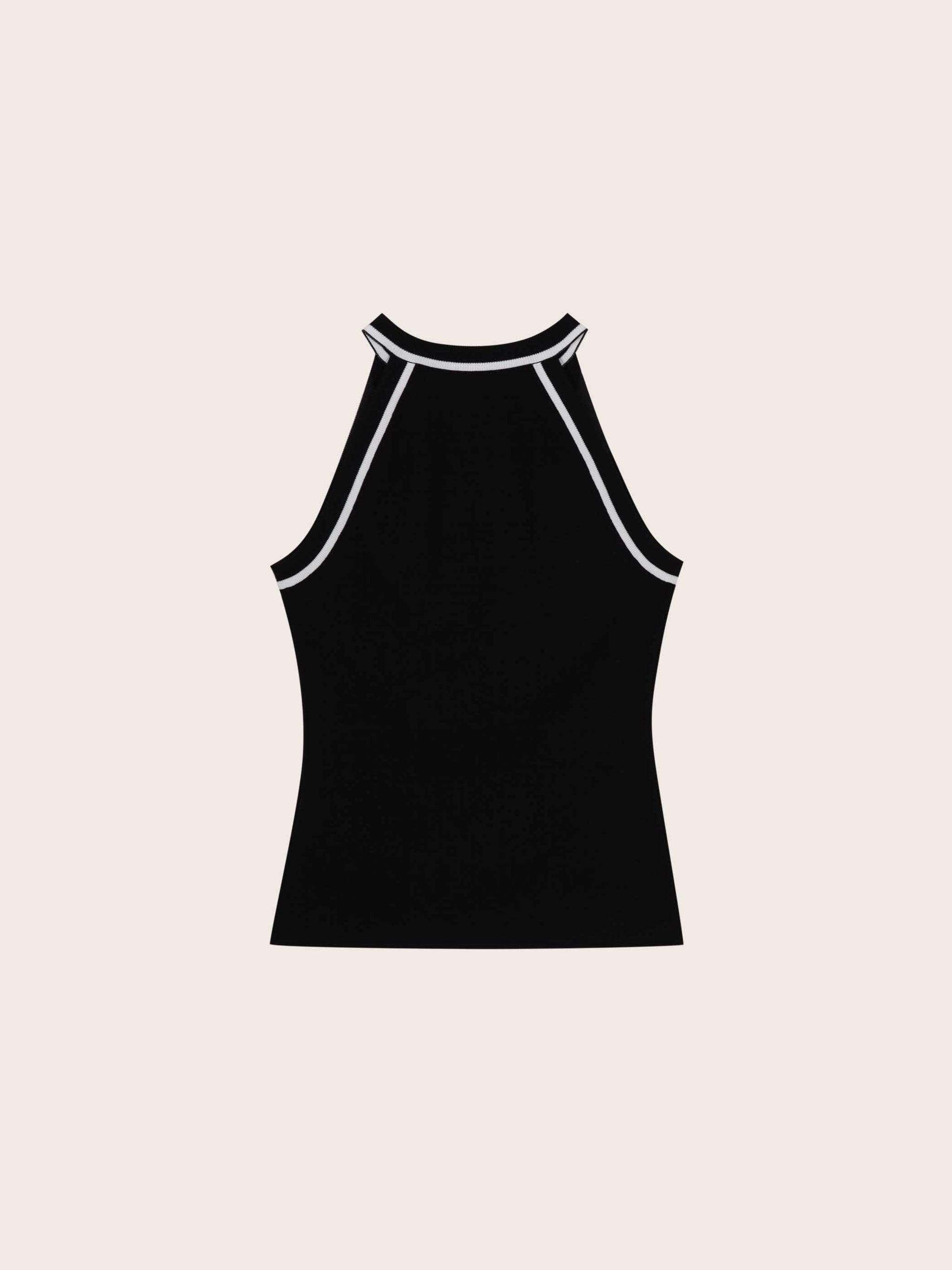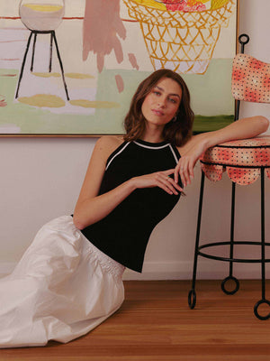 The Gemma Tank Top is a sleek and versatile knit essential, finished with contrast trim for a modern, sporty touch. Its halter neckline and racerback cut create a flattering silhouette that transitions effortlessly from casual daytime wear to elevated evening styling. With just the right amount of stretch, this top offers ease and comfort while maintaining a polished, body-skimming fit.