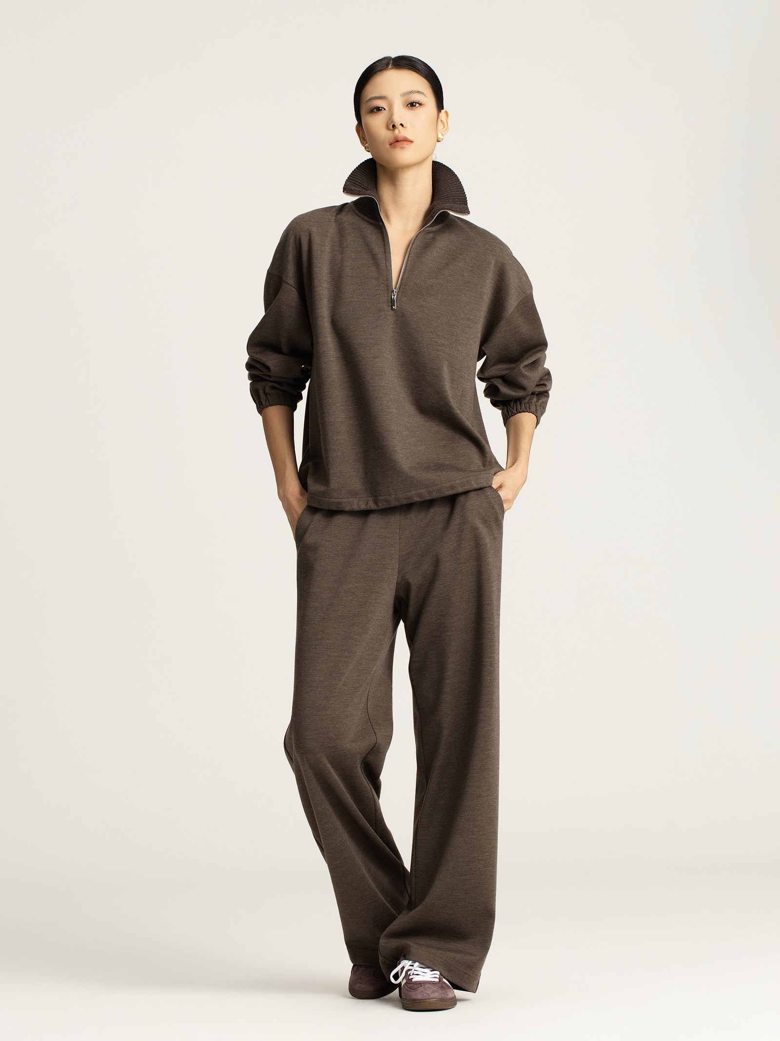 The colour palette remains understated yet impactful, with neutral hues like charcoal, ivory, navy, and beige chosen for their versatility. These shades complement existing wardrobes, making layering and styling effortless while encouraging a mindful approach to fashion.