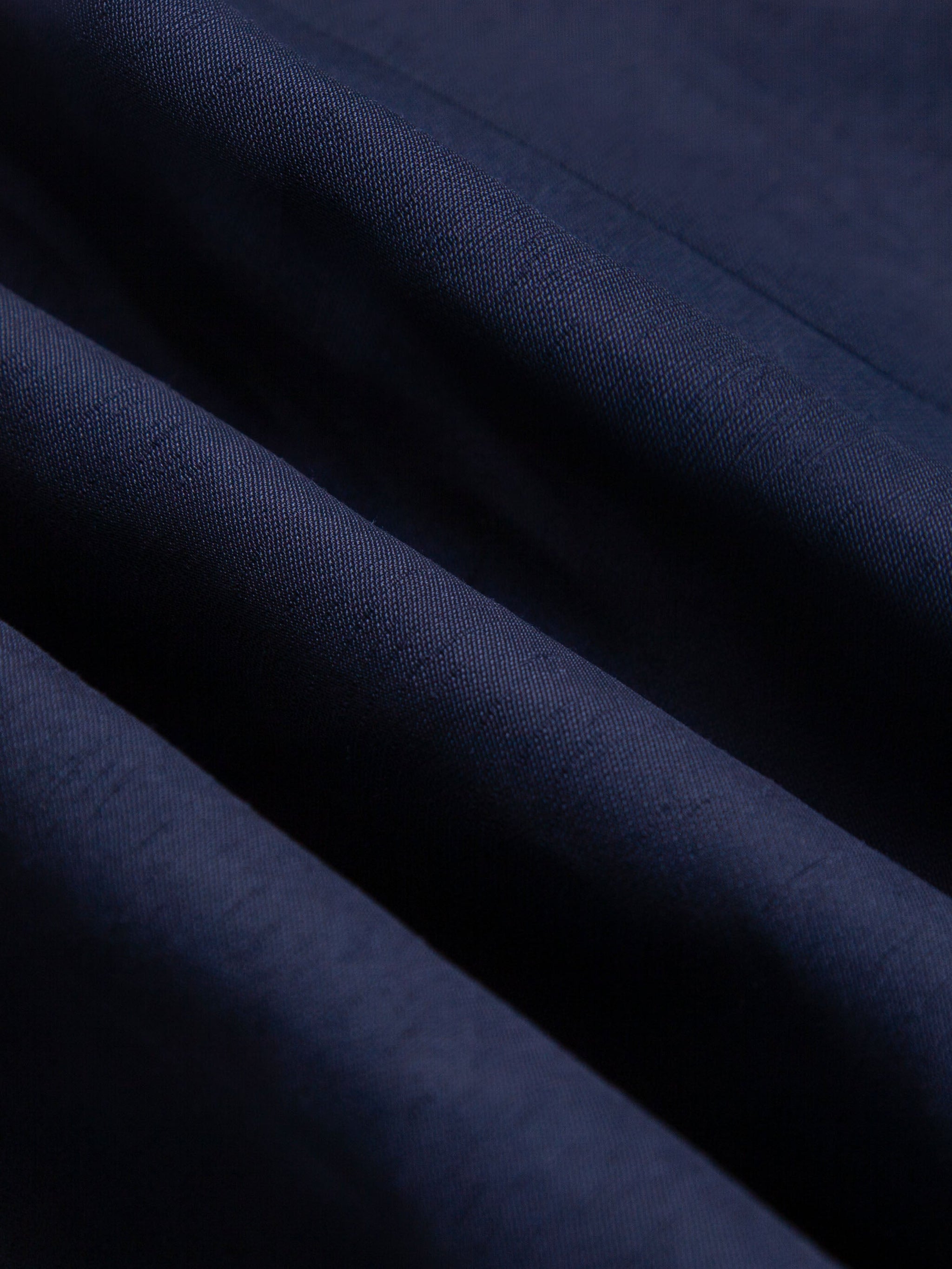 Crafted from an acetate-linen blend, this fabric balances refined elegance with natural ease. Acetate brings a silk-like luster and fluid drape, cool and smooth against the skin, while linen introduces breathability.
